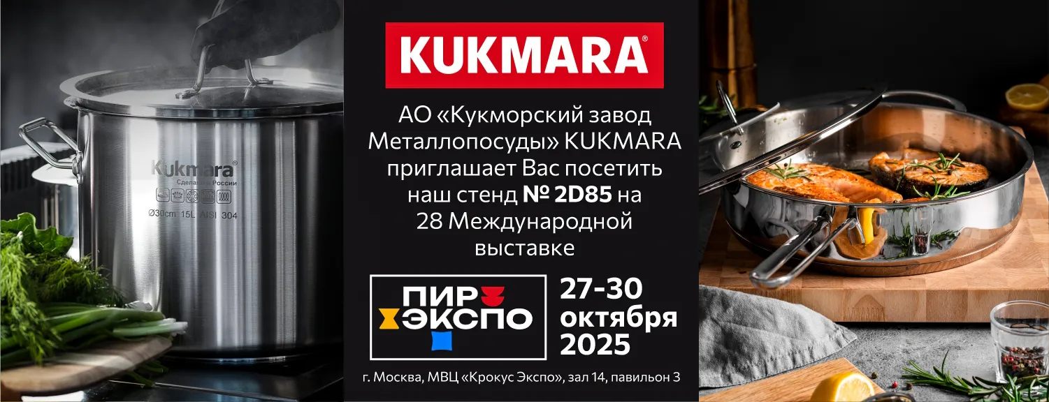 Приглашаем вас посетить стенд Kukmara на 28-й Международной выставке ПИР Экспо. Мы представим наши абсолютные хиты продаж и новинки посуды из нержавеющей стали, созданные специально для высоких требований профессиональной кухни. Приходите лично оценить качество, функциональность и долговечность наших изделий.